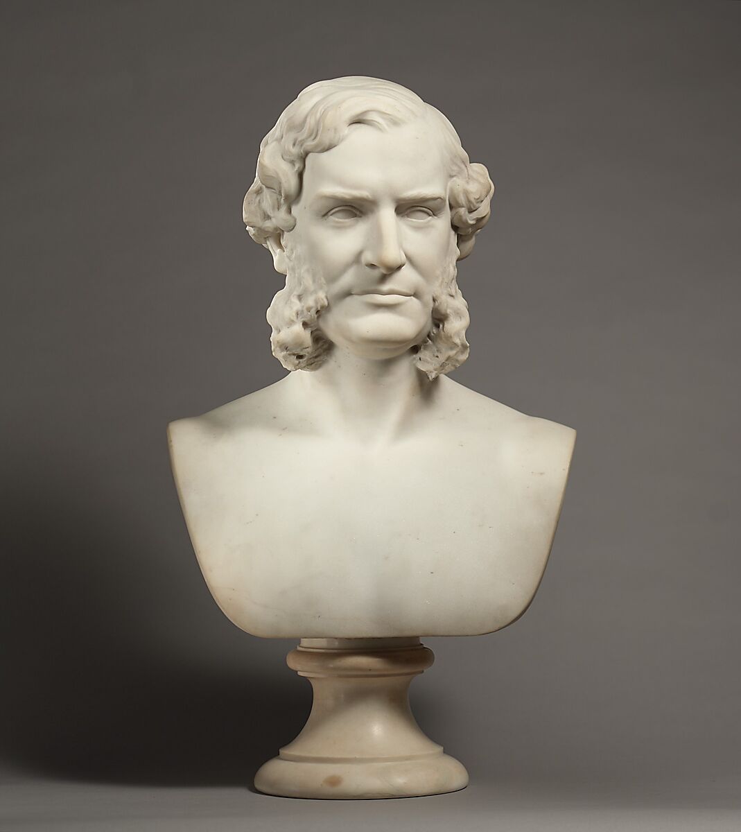 William Tilden Blodgett (1823–1875), a prominent Manhattan entrepreneur and philanthropist, sat for his portrait bust in the spring of 1865, shortly after the close of the Civil War. Blodgett appears with fashionable muttonchop sideburns and wavy hair, yet Ward coupled this realistic treatment with a classicizing bare-chested termination on a round socle. Both Ward and Blodgett were founding trustees of The Met and worked together to acquire the European and American paintings and sculptures that formed the nucleus of the Museum’s collection.