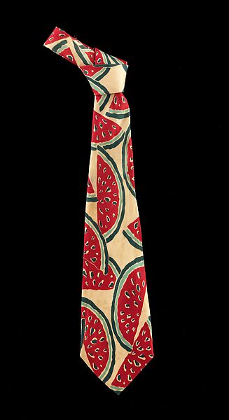 Watermelon imagery has become a lasting perennial theme and early artistic images, such as the one found here, were used to invite a sense of fun and whimsy in a time when most of the world was recovering or enduring the Great Depression. This style of representative imagery is indicative of printed silks of the 1920s and 30s.