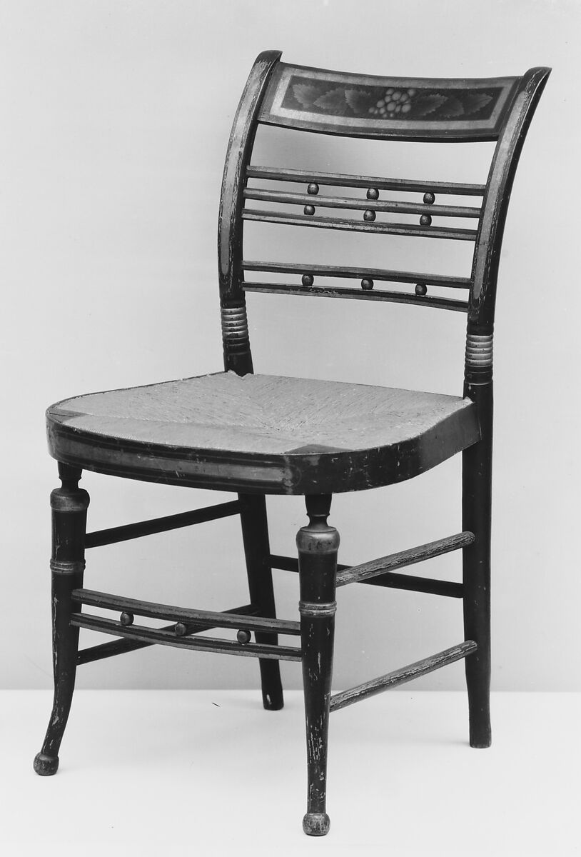 Adapted from Sheraton "fancy" chairs, this style of chair was popular in the early nineteenth century. Most were produced in New York and Connecticut.