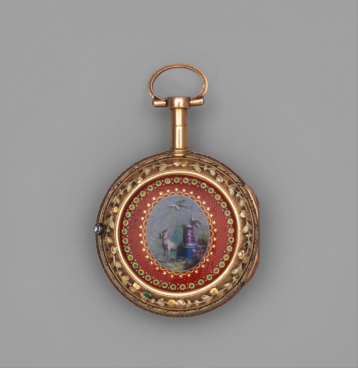- Medium: Case: varicolored gold, partly enameled; Dial: white enamel; Movement: brass and steel