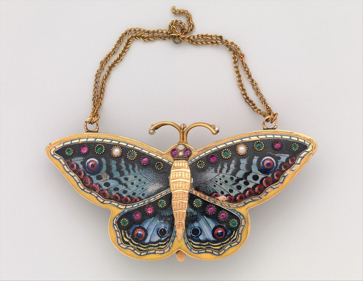 - Medium: Case of gold, enamel, and pearls
