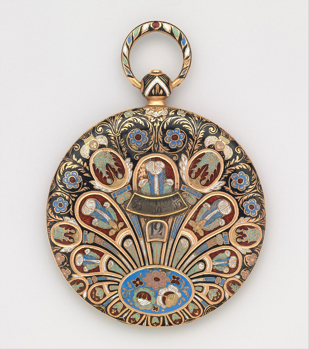 - Medium: Case of gold and enamel, with chronoscope dial; jeweled movement, with cylinder escapement