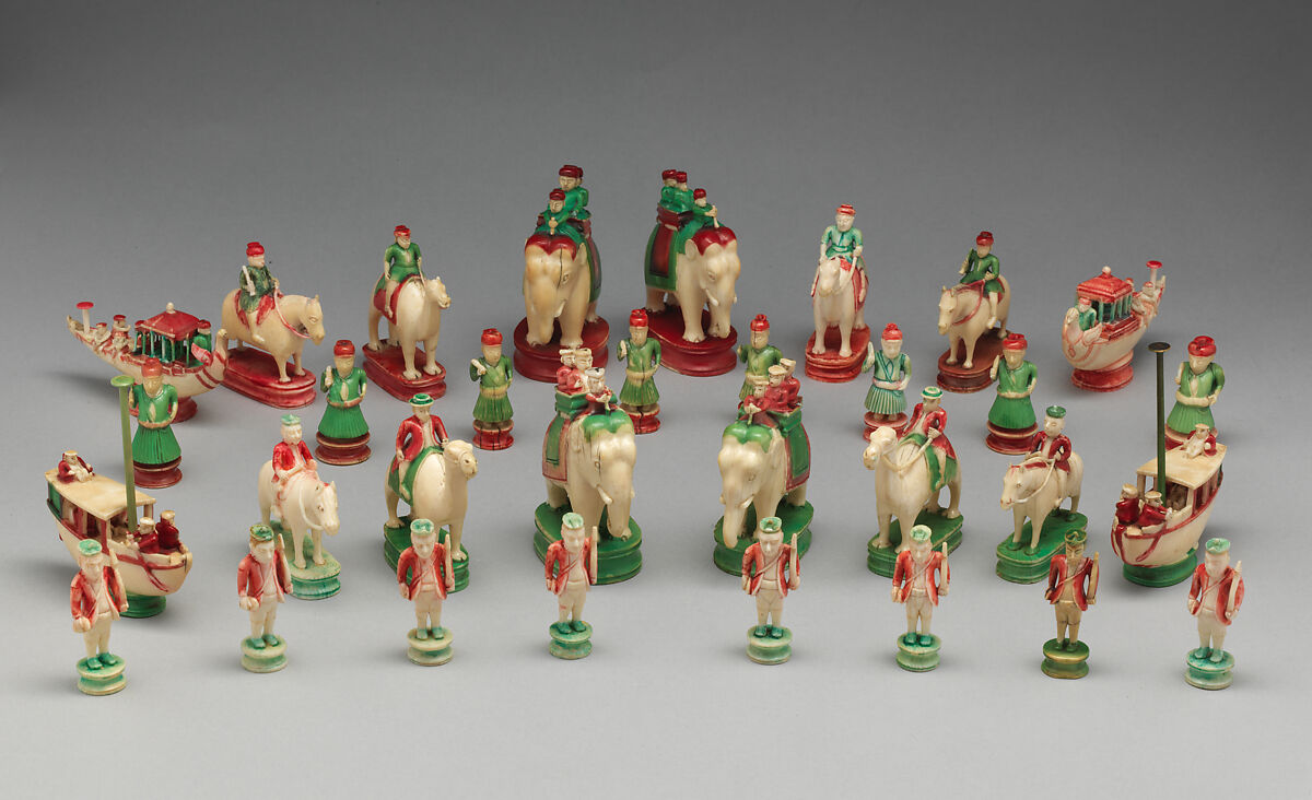 Sets such as this, representing an opposition of British and Indians, and elegantly carved, were probably made especially for British clients. The set is reputed to have belonged to the famous first governor of India, Warren Hastings (1732–1818), whose career was centered in Bengal, but no proof for this suggestion exisits. The period, however, would seem correct.