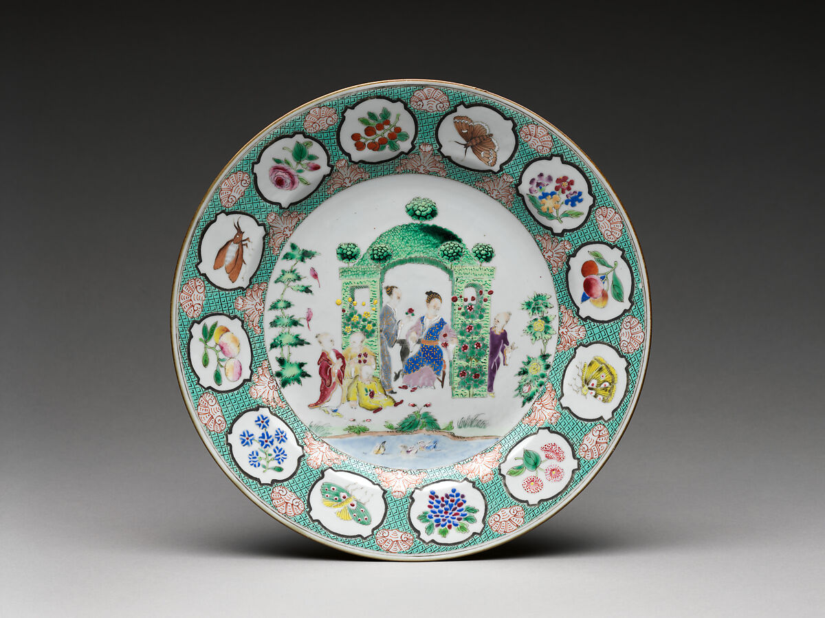 It is probable that the composition decorating this plate derives from a drawing by the Dutch artist Cornelis Pronk (1691–1759), who is known to have furnished designs to the Dutch East India Company. Pronk’s drawings were widely employed by Chinese porcelain painters as sources of decoration for porcelain intended for export to Europe.