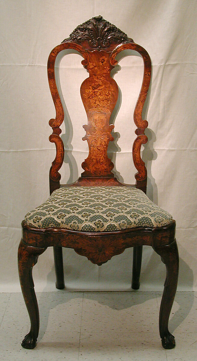 - Medium: Walnut, marquetry woods; the marquetry added at a later time, probably in the late 19th century