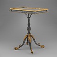 이 탁자는 박물관 컬렉션에 도입된 첫 러시아 가구입니다. 은 상감 세공, 장식적 에칭, 그리고 수많은 금도금 적용으로 꾸민 작은 가구 조각들에 속하는 이 탁자는 러시아 외부에서 유일한 예이며 가장 큰 시각적 성취물이었습니다. 이러한 이례적인 물건은 주로 외교적인 증정 또는 혼수의 일부입니다. 최근 연구에 의하면 이 행진 탁자(전시 전용)는 러시아 황실 가문을 위해 만들어졌으며 파블로프스크 궁전에 있는 마리아 표도로브나 황후의 침실에 포함되었습니다. 1801년에 그녀는 언니의 홀아비인 올덴부르크의 피터 공작에게 주었습니다.