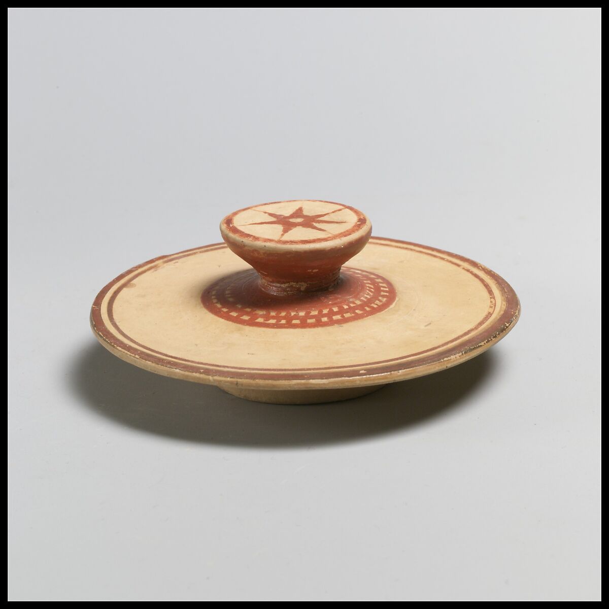 Lid with bands, and on knob a star-ornament.