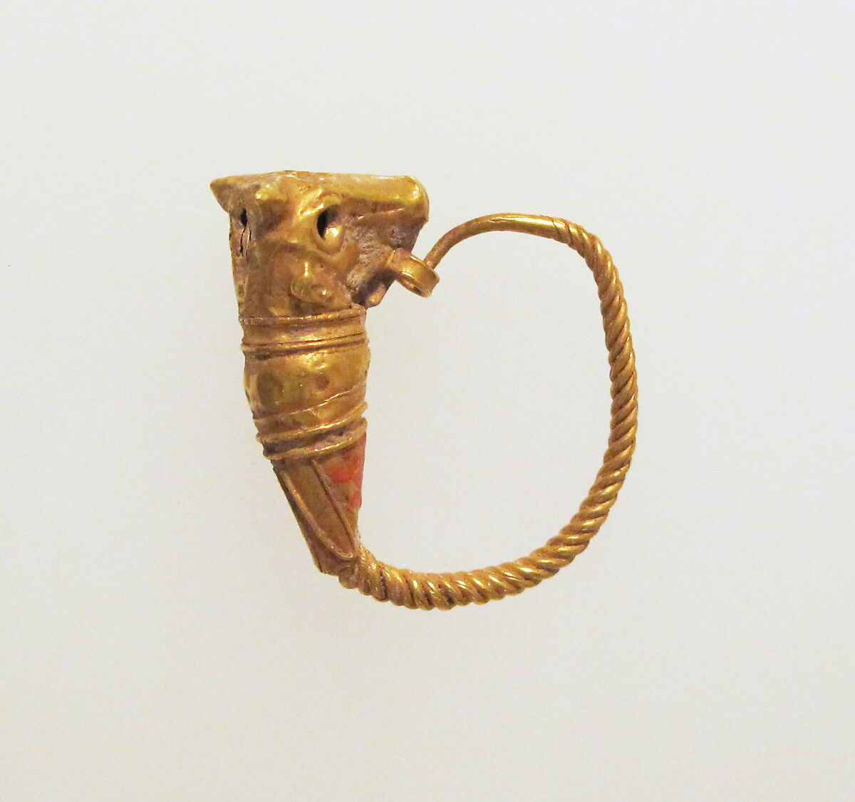 - Title: Gold earring with head of a bull