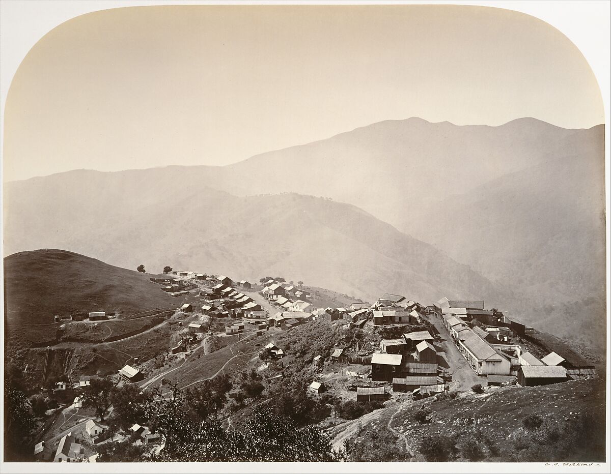 Watkins, the consummate photographer of the American West, combined a virtuoso mastery of the difficult wet-plate negative process with a rigorous sense of pictorial structure. In 1863 he was hired to make a photographic survey of the quicksilver mining operations in New Almaden, near San Jose, California. Quicksilver—used to bond with, and weigh down, the finest particles of gold that might otherwise float away in the sluicing process—was essential to the gold-mining industry, and the mining of quicksilver itself became a profitable enterprise.