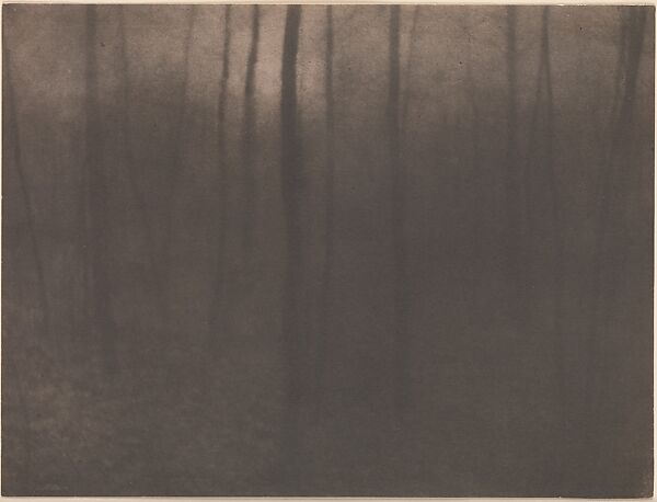 Steichen's twilight and moonlight photographs of the late 1890s were deeply influenced by the atmospheric effects of Whistler's London nocturnes and by the landscapes of the American Tonalist George Innes. In 1901 Steichen wrote of the visual magic of the woods at dusk: "What a beautiful hour of the day is that of the twilight when things disappear and seem to melt into each other, and this great feeling of peace overshadows all."