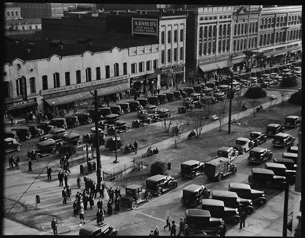 - Title: [Stores and Parked Cars on Main Street, From High Elevation, Macon, Georgia]