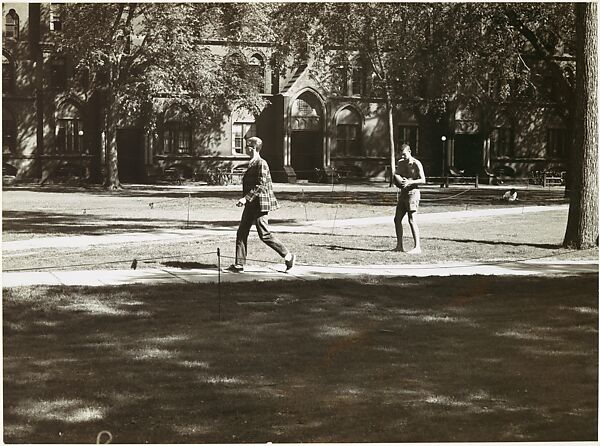 • Title: [Young Man on Footpath and Shirtless Student Holding Football in Yard, Yale University Campus, New Haven, Connecticut, Possibly for Unpublished Fortune Portfolio "The Clothes"]