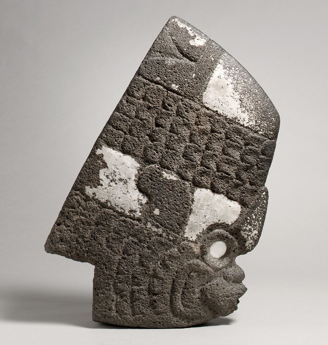 Mesoamerican ballplayers wore protective gear called hachas, palmas, and yokes to protect their hips and abdomens from the impact of the game’s solid rubber ball (see MMA 1978.412.15 and 1978.412.16). In painting and sculpture, the yoke is shown worn around the player’s hips, the palma or hacha attached at the front. Those used during active play were most likely made of wood or some other light material; stone versions such as this one were worn, if at all, during ballgame-related rituals, or placed on display. Given the distinctive design of each hacha, both those worn and those carved in stone may have served to identify teams or individuals.
