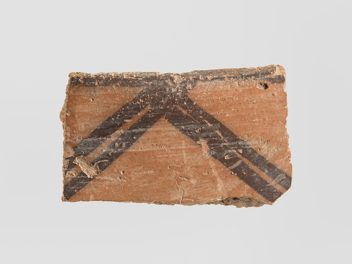 This sherd is made of a red-brown clay, with black painted decoration. It is typical of Namazga I ceramics from Turkmenistan, dating to ca. 4000-3500 B.C. It was excavated in 1937 at a prehistoric site in the vicinity of Nishapur in northeastern Iran. While Nishapur itself was founded by the Sasanian king Shapur I (reigned ca. A.D. 241-272), this sherd shows that human habitation there goes back to the prehistoric period. Furthermore, the prehistoric pottery from Nishapur has close affinities with ceramic materials from Central Asia rather than with contemporary sites in Iran, meaning that in this period its inhabitants were likely culturally linked to their neighbors to the east. At the same time, Nishapur’s location on what later became known as the Great Khorasan Road suggests that it was part of the trade network that facilitated the import of precious stones such as lapis lazuli, carnelian and turquoise from Central Asia to Mesopotamia.