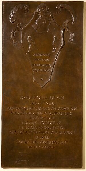 Daniel Chester French, one of America’s leading sculptors and the creator of such famous monuments as the Lincoln Memorial in Washington, D.C., was a trustee of the Museum and chairman of the Committee on Sculpture from 1903 until his death. He created this bronze relief tablet, one of his last works, as a personal tribute to Dean. The lettering on the relief was carried out by French’s daughter, Margaret French Cresson, a noted sculptor in her own right, who assisted him in some of his later projects.