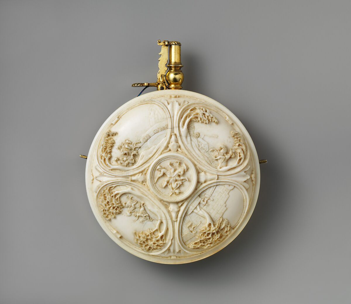The finely carved scenes represent hunters and horsemen. Given its quality and materials, this flask must have been made to accompany a lavishly decorated hunting rifle (for example, acc. nos. 28.125 and 42.50.8).