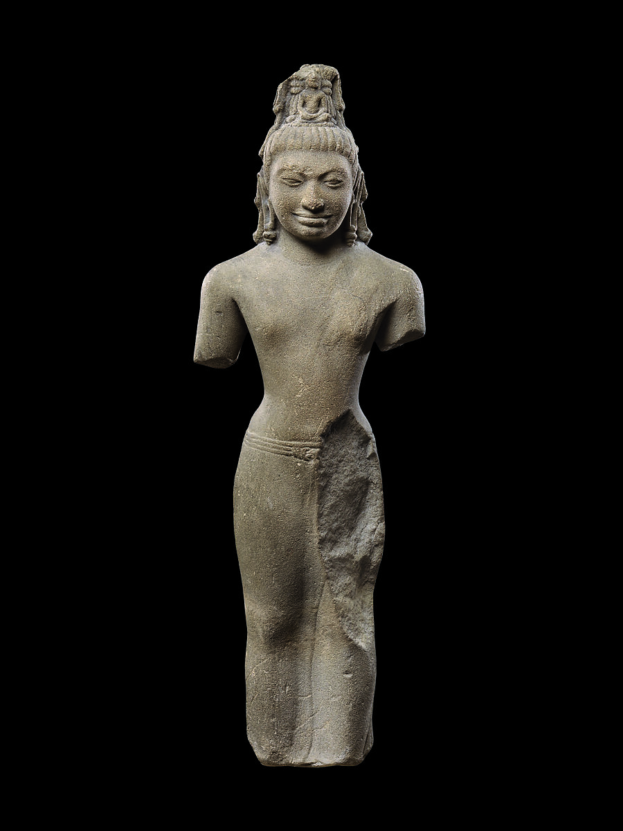 This bodhisattva of compassion is represented as an ascetic, dressed in a waistcloth secured with a cord, the details incised into the contours of his torso. He has a flayed antelope skin (ajina) across his left shoulder, an attribute of the earliest representations of this bodhisattva in early seventh-century northern India. The cult of Avalokiteshvara assumed special importance in Mahayana Buddhism during this period. Soon after its development in India, it was shared with Southeast Asian practitioners.