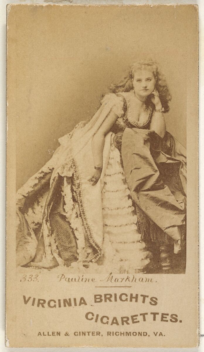 - Title: Card 333, Pauline Markham, from the Actors and Actresses series (N45, Type 1) for Virginia Brights Cigarettes
