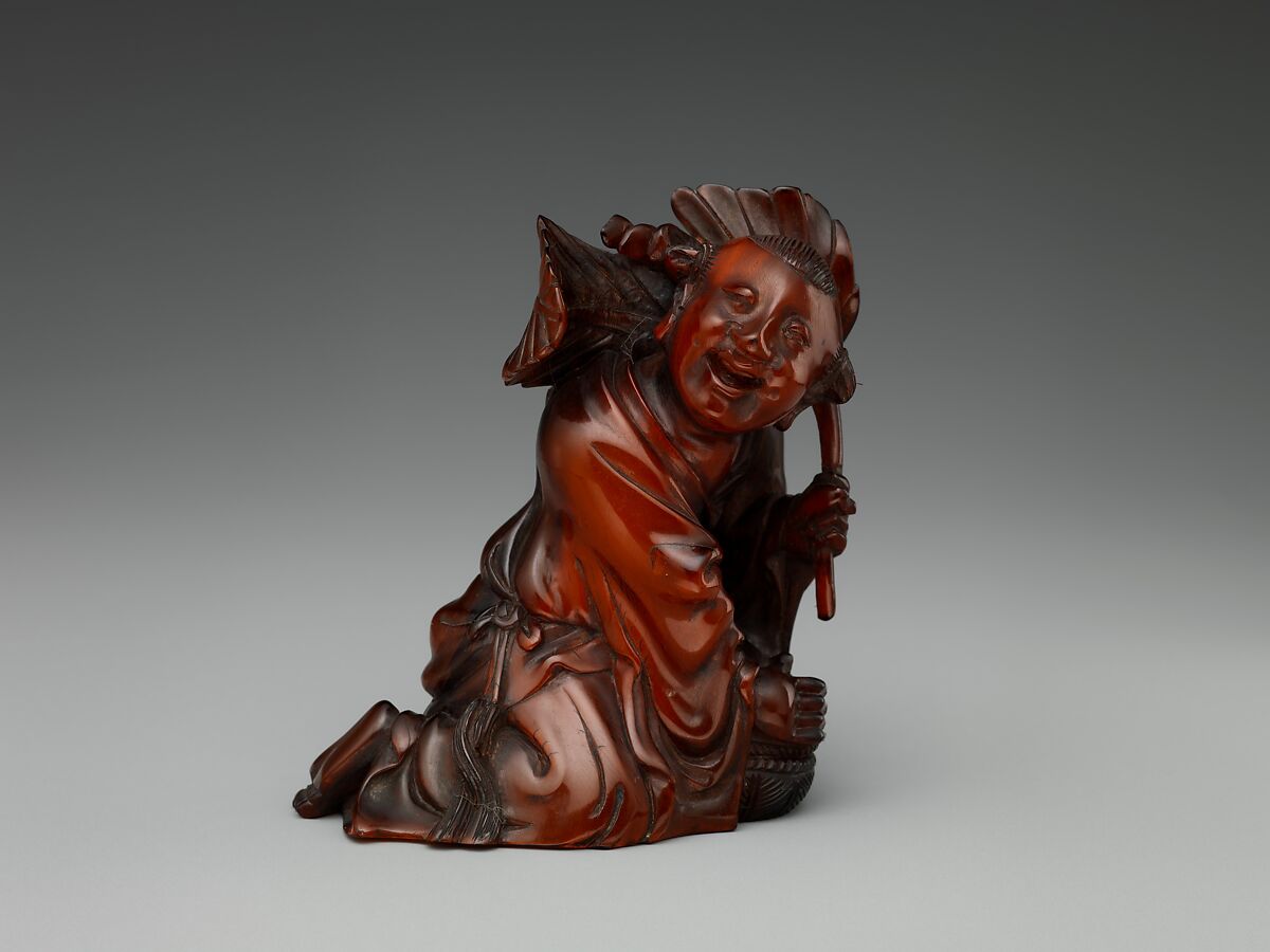 Two boys each holding a lotus or a leaf in one hand and a box in the other are popular images symbolic of harmony and union. Known as the Two Immortals of Harmony (He-He Erxian)—in reference to the characters for these virtues, both of which are read he—this pair is also thought to have been inspired by the legendary Tang dynasty (618–907) Buddhist monks Hanshan and Shide. (pair with 42.90.32a, b)