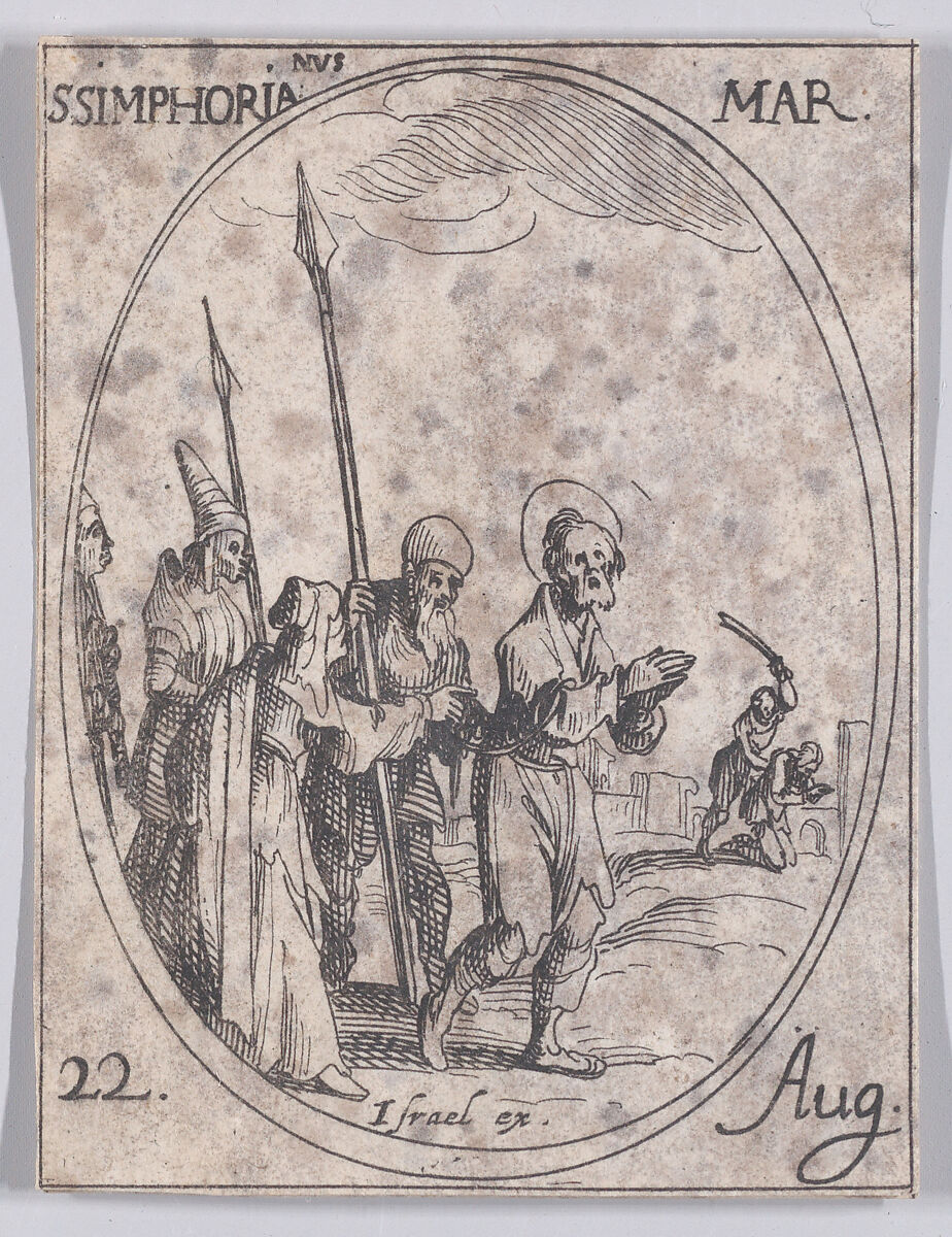 - Title: S. Symphorien, martyr (St. Symphorian, Martyr), August 22nd, from "Les Images De Tous Les Saincts et Saintes de L'Année" (Images of All of the Saints and Religious Events of the Year)