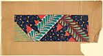Vertical Pattern with Diagonal Friezes Combined with Areas of Blue Circles Over Yellow Background, from a group of 158 textile designs from an unidentified French designer. The designs include brightly colored patterns and single motifs in late Art Nouveau and Art Deco styles. Most designs have been made on tracing paper and show signs of transfer. Some include instructions for execution, written in French.