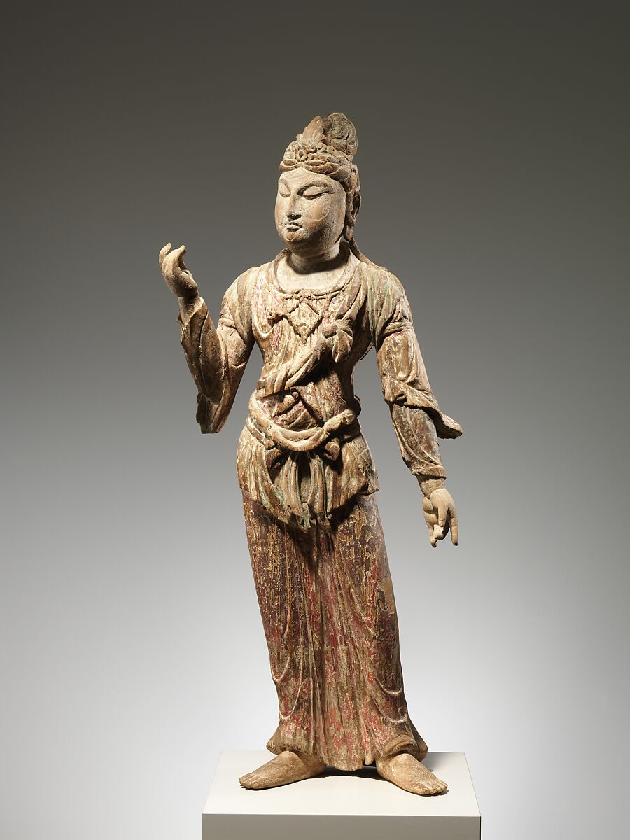 The figure's posture suggests that this sculpture represents a bodhisattva who served as an attendant to a Buddha or some other transcendent figure. It was most likely part of a larger group of figures depicting various members of the Buddhist pantheon.