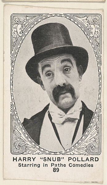- Title: Card 89, Harry "Snub" Pollard, Starring in Pathe Comedies, from the Movie Actors and Actresses series (E123), issued by the American Caramel Company