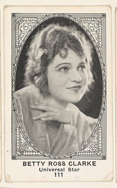 - Title: Card 111, Betty Ross Clarke, Universal Star, from the Movie Actors and Actresses series (E123), issued by the American Caramel Company