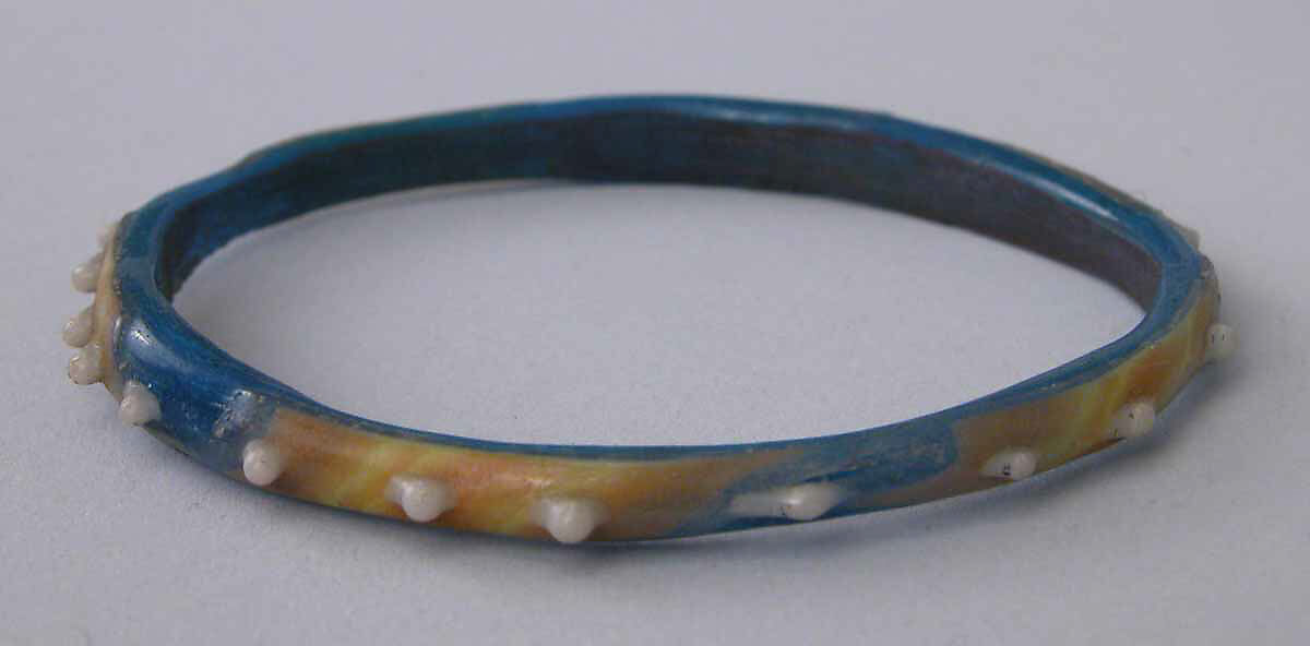 The earliest known examples of this type of seamless mosaic glass bracelet are from the late thirteenth century; it continued to be produced well into the nineteenth century at Hebron, in Palestine. This bracelet, together with thirty-three others in the collection, comes from UpperEgypt and was probably made during the Mamluk period.