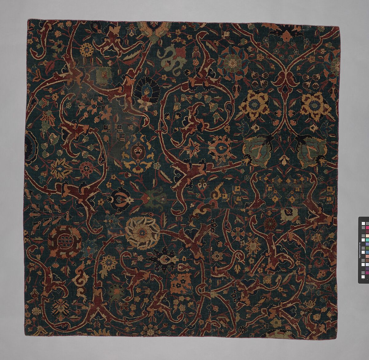 - Title: Blue-ground Carpet Fragment with Scrolling Floral Vines