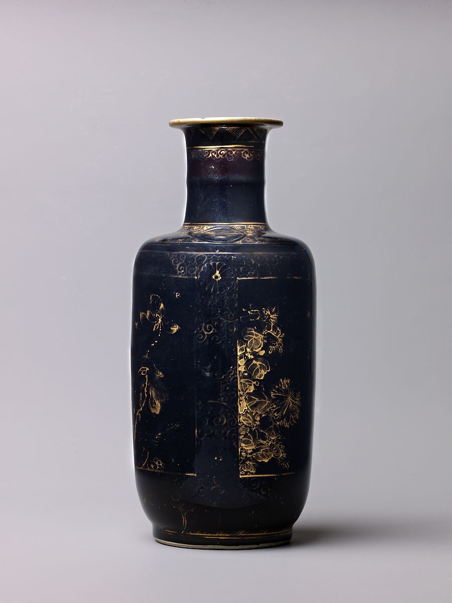 - Medium: Porcelain with mirror-black glaze, painted in overglaze gilt.