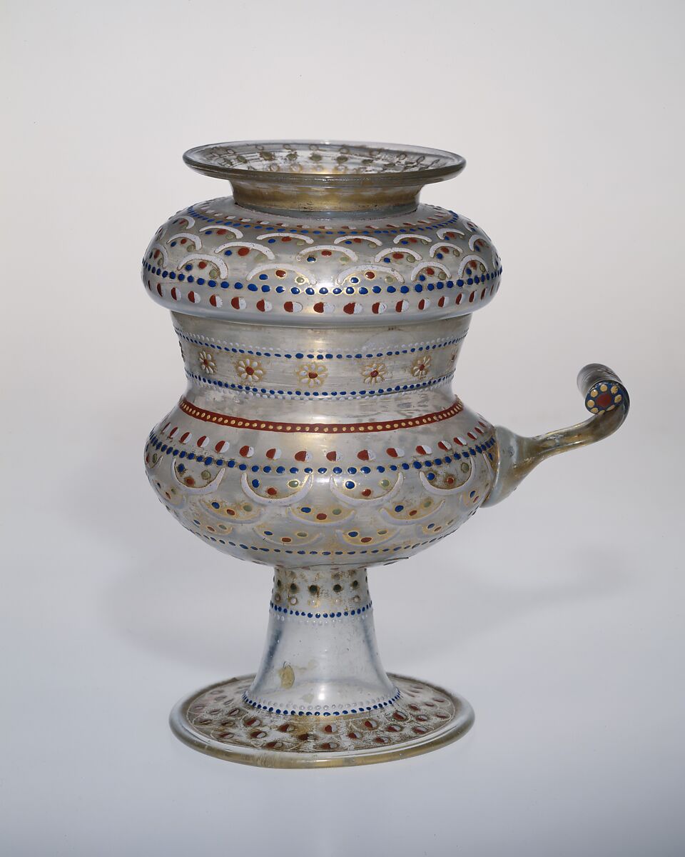 - Medium: Colorless (slightly gray) nonlead glass. Blown, enameled, gilt.
