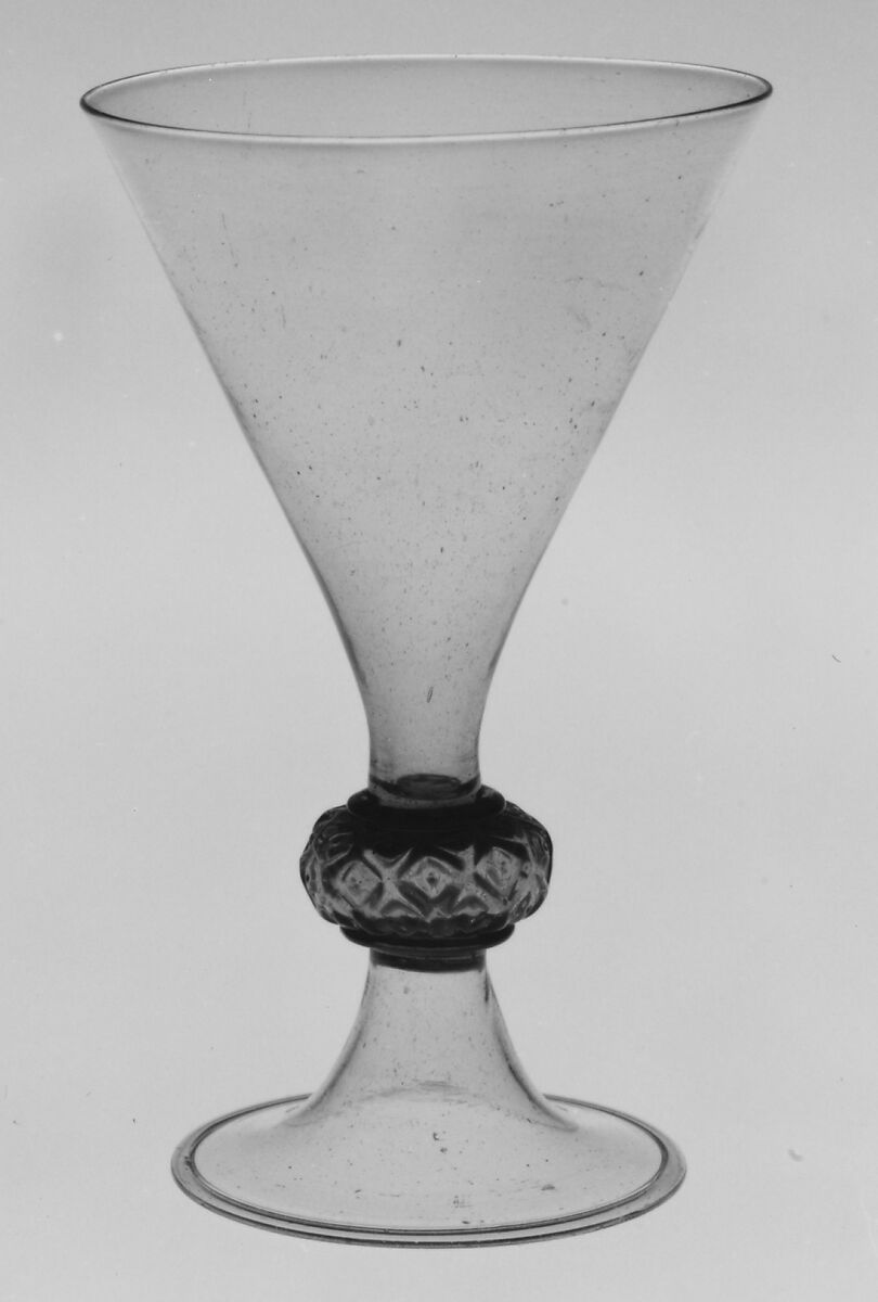 - Medium: Colorless (dark gray) bubbly nonlead glass. Blown, pattern molded, gilt.