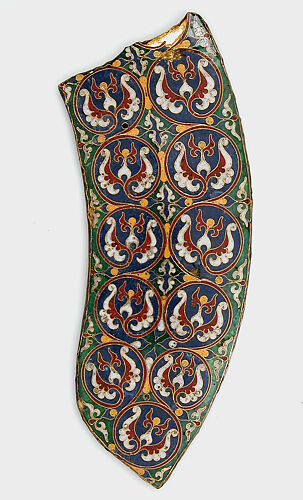 When intact, this example of Port Saint Symeon ware may have shown the rider hunting with a falcon. It is typical of the wares produced in the 1200s at the Crusader port of the Byzantine city of Antioch, which fell to the Mamluks of Egypt in 1268. Similar examples have been found in Crusader castles in the Holy Land as well as Italy.