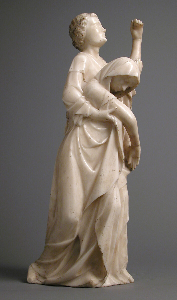 Said to have come from the collegiate church of Notre-Dame at Huy in Belgium, these figures were probably part of a large sculptural retable behind the altar. They are stylistically related to the marble Virgin and Child (see 24.215), ordered in 1345 for the church of Saint Catherine at Diest, Belgium.