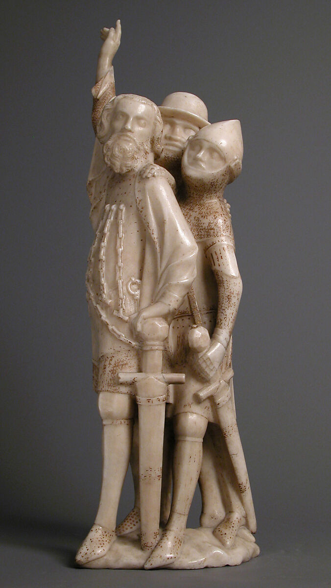 Said to have come from the collegiate church of Notre-Dame at Huy in Belgium, these figures were probably part of a large sculptural retable behind the altar. They are stylistically related to the marble Virgin and Child (see 24.215), ordered in 1345 for the church of Saint Catherine at Diest, Belgium.