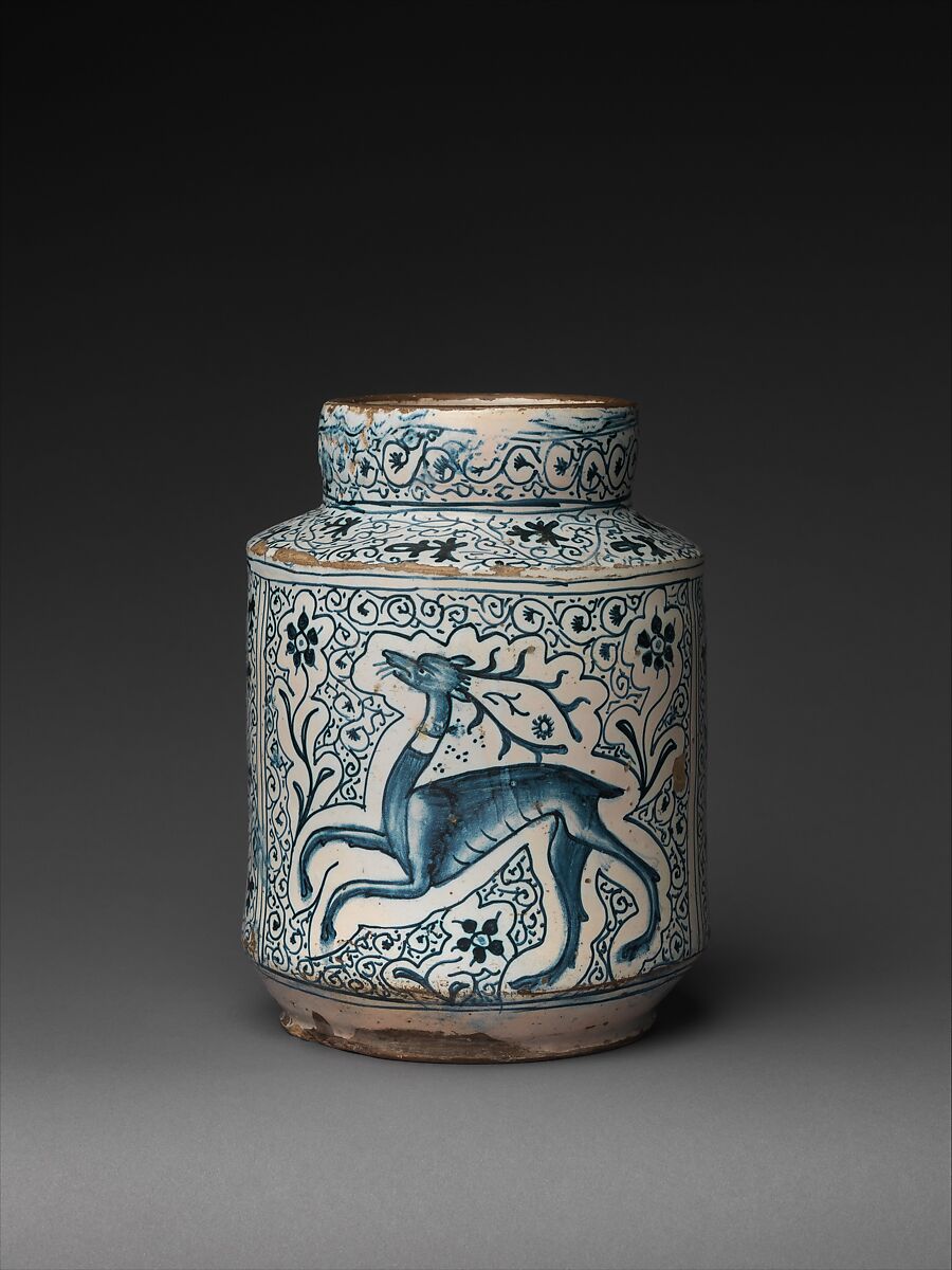Maiolica storage jars for Italian pharmacies were highly decorative and frequently combined animal and floral motifs, as demonstrated by this particularly fine pair.