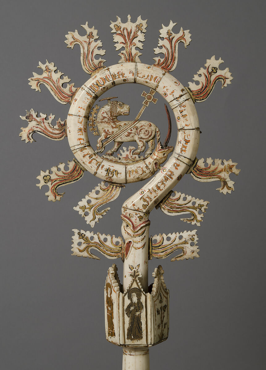 The crozier was the pastoral staff based on the shepherd's crook and carried by bishops, abbots, and abbesses. This example belongs to a group of objects made in northern Italy. This crozier was originally made in sections with threaded ends. The three sections here have been damaged and repaired and are no longer separable. There may have been a fourth section, which is now lost.