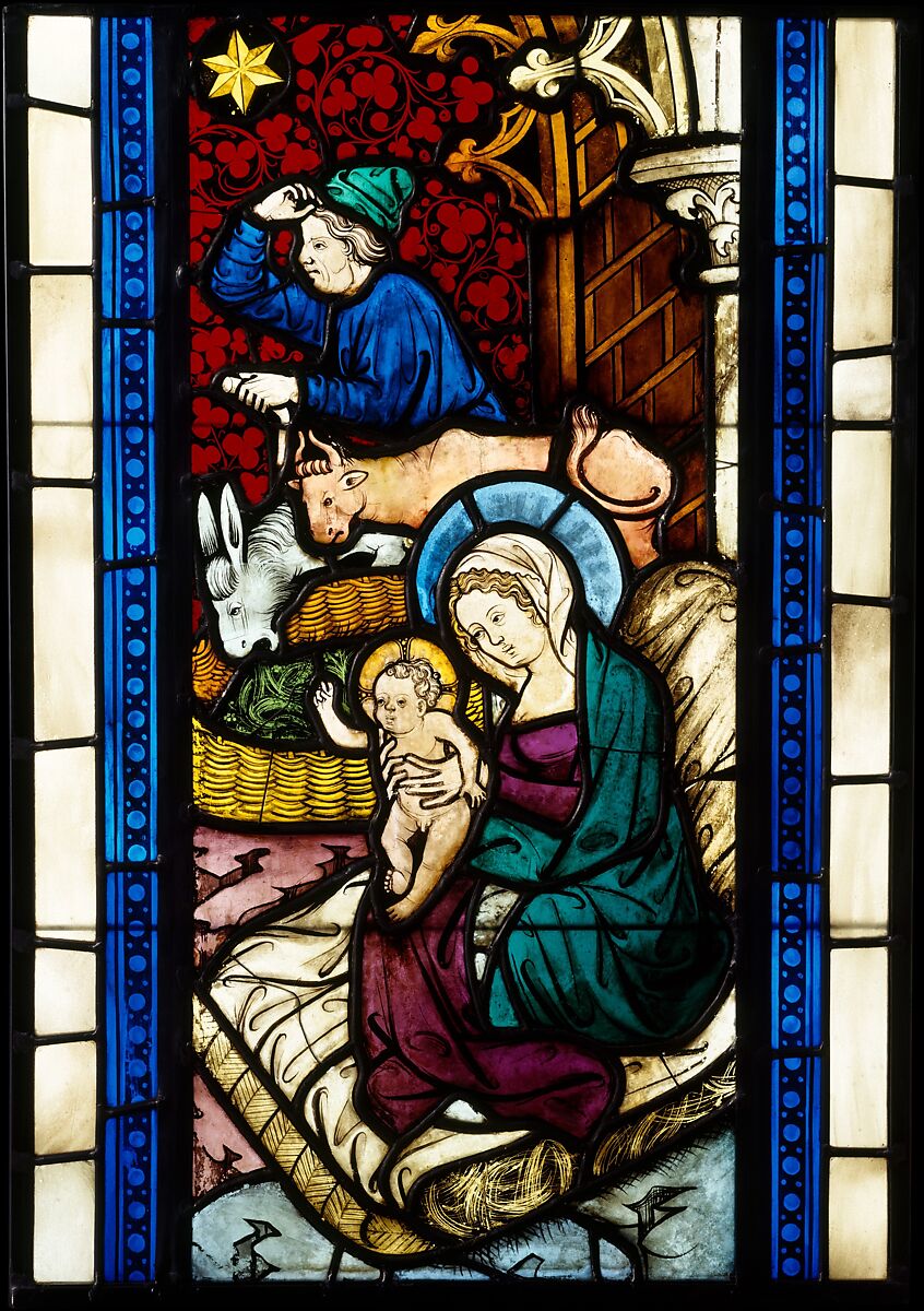 이야기의 상세한 묘사, 풍부한 색채 그리고 시각적 조형은 이 유리 작품을 제작한 궁정 공방의 특유한 양식입니다. 보라색 옷을 입은 성모는 아기 예수와 함께 짚방석에 앉아 있으며 근처에서는 동물들이 먹이를 먹고 있습니다. 화려한 복장의 동방박사들이 황금 선물을 바치는데, 한 사람은 무릎을 꿇고 왕관을 벗어 자신을 낮추고 있습니다. 남 비엔나의 이브라히스도프 성은 몽고의 침략을 막기 위해 축조되었지만 그 후 평화로운 시대가 도래하자 루돌프 폰 티르나(1406년 사망)가 스테인드글라스로 장식된 예배당을 증축하였습니다. 이 성은 1683년에 터키군에 의해 약탈된 후 중세의 영광을 회복하지 못하였습니다. 비엔나에 있는 1매의 패널을 제외하고 그리스도 생애의 일곱 장면이 묘사된 클로이스터스의 창과 석조 천개만이 현존합니다.