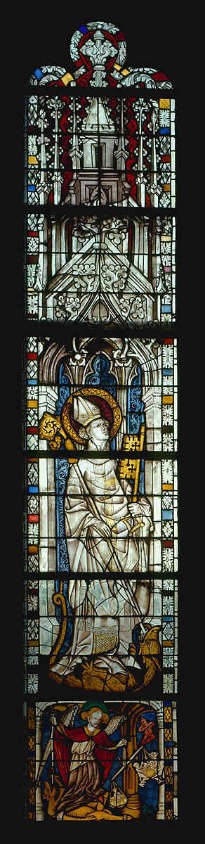 - Medium: Pot-metal glass, white glass, vitreous paint, silver stain