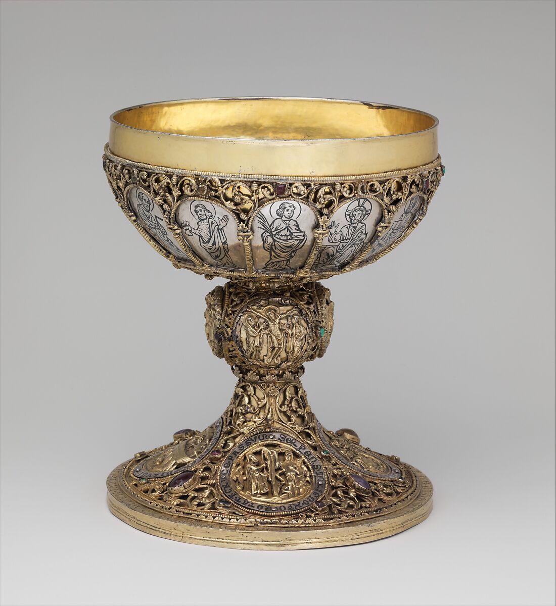 섬세하게 곡선 처리된 와이어, 그리고 타출세공 기법과 니켈로 상감으로 묘사한 도상으로 풍부하게 장식된 이 미사용 제기는 빵을 담는 성반과 포도주를 마실 때 사용하는 성배와 스트로로 구성되어 있습니다. 스트로는 주로 두 개 한 쌍이며 그리스도의 피로서 신성시되는 포도주를 흘리지 않기 위해 사용되었습니다. 성배와 성반에는 그리스도의 생애 장면과 이를 예언하는 구약성서의 사건들이 대응하여 묘사되어 있습니다. 성배 표면은 그리스도 12 제자의 초상으로 장식했으며 성반에는 이 제기일습이 원래 사용되었던 프라이부르크 임브라이스가우 근처 수도원의 수호성인 성 투르트페르트의 중요성을 강조하기 위해 그의 초상을 중심 원 최상부의 그리스도 초상 맞은편에 배치하였습니다.