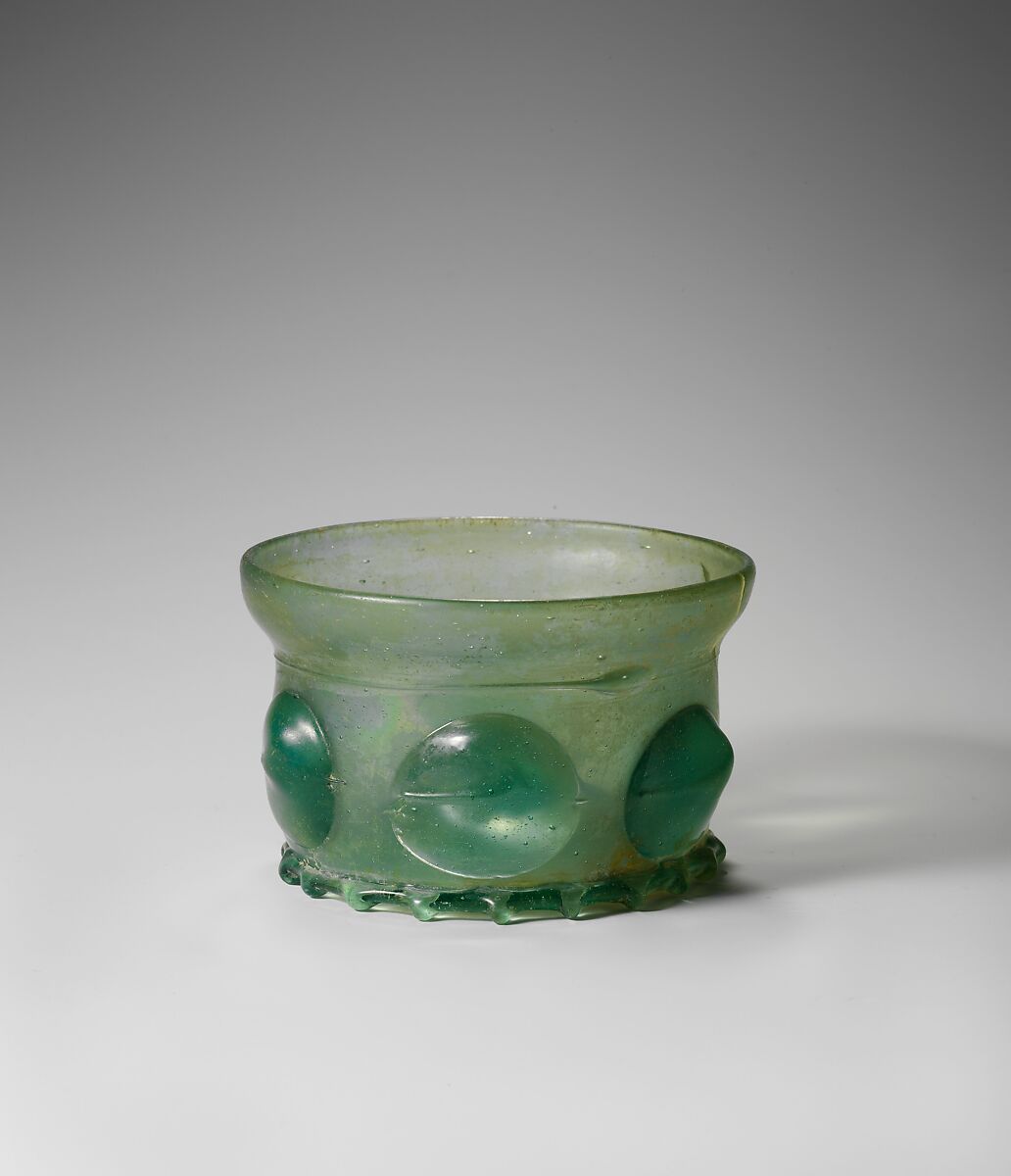 In this beaker, the Krautstrunk ("cabbage stalk") decoration has been truncated, contracting the prunts to a single row.