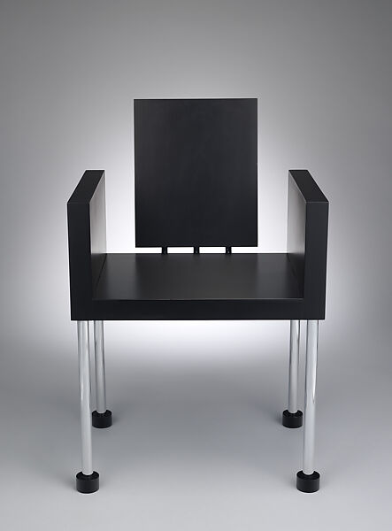 The honesty with which Sottsass designed and marketed this work to a luxury clientele could be seen as antithetical to modernism’s democratic ethos predicated on mass production. With the suite of furniture that includes this chair, there was no illusion of reaching ordinary consumers—the pieces are loft-scaled, exquisitely proportioned ensembles made of rare stones and exotic woods. Titles of other items in the series include What’s the Name of Your Swiss Bank Account? and We Went to Crete (That Raining Spring).