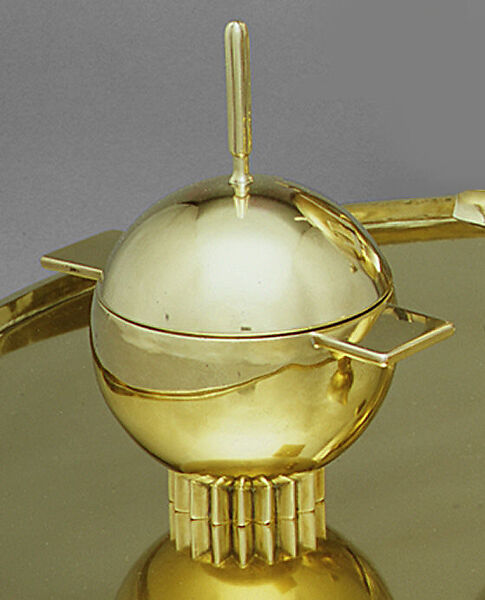 An internationally renowned architect and designer, Saarinen immigrated to America in 1923 and settled in Bloomfield Hills, Michigan, in 1925. He designed this prototype sugar bowl, part of a larger tea service (see MMA 1999.27.1a-c-.5), in the early 1930s for use in his Michigan home. The sophisticated design relies on geometric forms, with fine proportions offsetting austere decoration. Saarinen insisted on brass plating for his personal pieces because the color appears warm, while the International Silver Company produced a limited commercial run of the design in less expensive, cooler-looking silver plate.