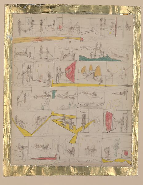 - Medium: Graphite and wax crayon on paper mounted on gold metallic foil
