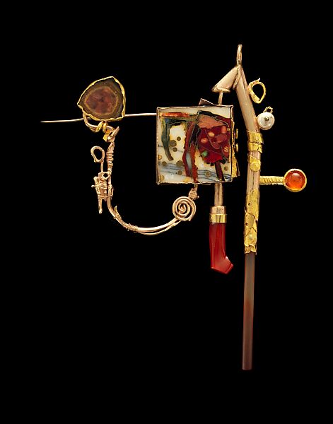 - Medium: Brooch: 14K gold, 18K gold, 24K gold, gold cloisonné enamel on gold and silver, sterling silver, tourmaline, coral, agate, Mexican opal, and pearl