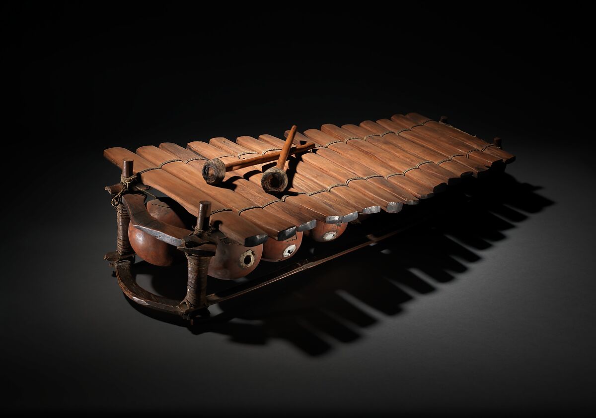 There are many different versions of the bala’s origin story in jeli traditions. One common thread among these many versions is the influence of Susu (also Sosso) sorcerer king Sumanguru Kante on the instrument, reflecting the significance of numulu, or blacksmiths, on the tradition. Another common thread is the symbolism of the magical bala, specifically Kante’s bala, being transferred to Bala Faseke Kouyate, the first Malinke player, which is representative of the transfer of power from blacksmiths to warriors in the thirteenth century with the birth of the Mandé empire. According to ethnomusicologist Eric Charry, this bala in the Met’s collection closely resembles the Susu Bala, the original Bala played by Kante and which has been closely guarded by the Kouyate family in Niagassola, Guinea, for generations (2000: 144).