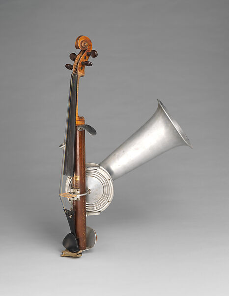 The nondirectional sound of the violin family was difficult to capture before the advent of electric recording. Strohviols are not electric instruments, but their large funnels directed the sound of their strings toward the horn of the recording phonograph. Although electric recording made strohviols obsolete, their minimalist bodies inspired the design of later electric violins.