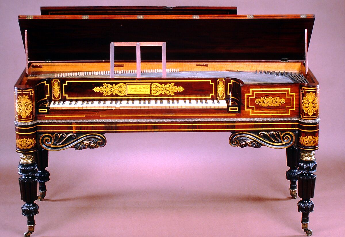 This piano was made by the venerable Philadelphia company Loud & Brothers. Piano manufacturing was one of the leading industries in nineteenth century America as the growing middle-class purchased instruments for their homes. Many U.S. cities boasted a thriving industry, and for a time Loud & Brothers was one of the country's leading firms alongside Chickering in Boston and steinway in New York. This elaborately decorated square piano is similar in its decorative treatment to an upright piano by Loud & Brothers also in The Met's collection (1976.317.1).