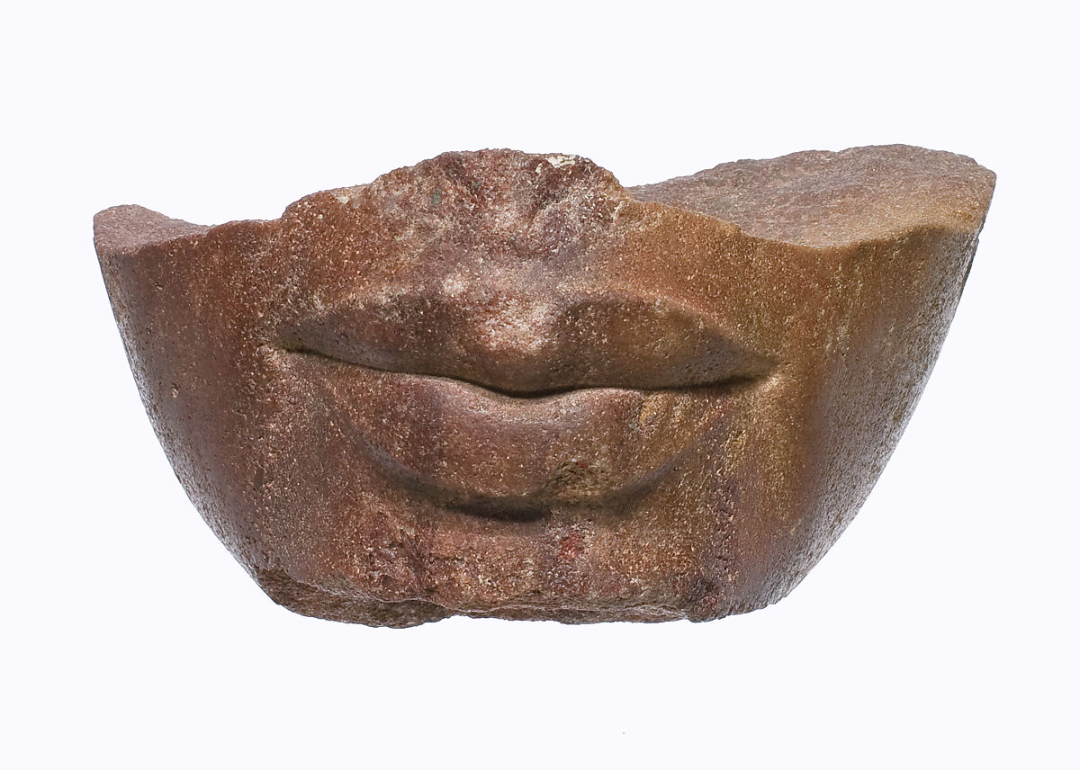 This lower part of a face represents a member of the Amarna royal family. The wide and full lips and the lack of lines in the face suggest one of the princesses is depicted.